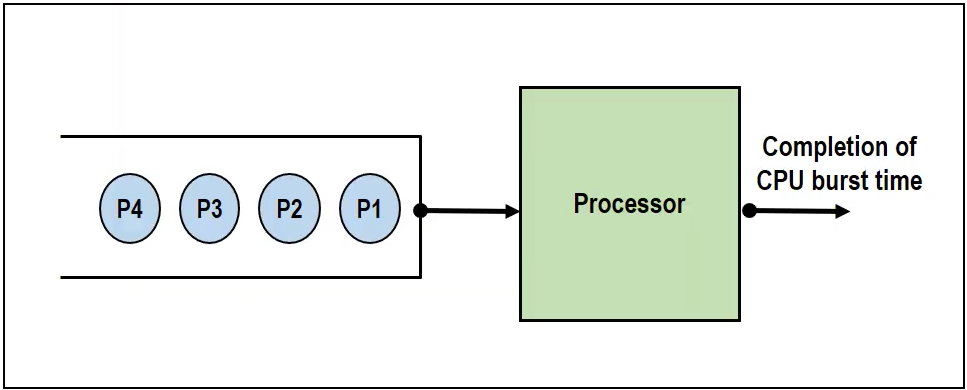 - 스케줄링의 기준은 도착 시간이 된다. 어떤 프로세스가 ready queue에 먼저 도착했는지를 본다.
