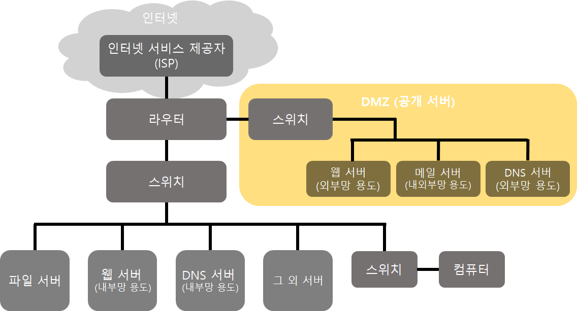 - 외부 네트워크와 내부 네트워크 사이에 위치한 중간 지대를 말한다.