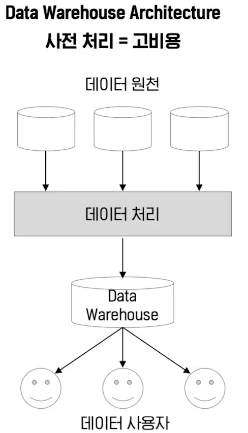 즉, 데이터를 생성하여 데이터 웨어하우스에 정리해서 저장하고, 분석하려고 할 때 가져가도록한다.
