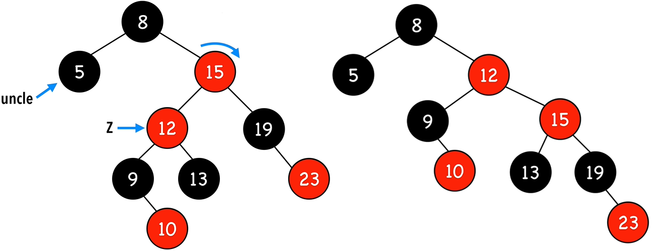 12가 z 노드가 되고, case 3)에 맞게 부모 노드를 회전시킨다.