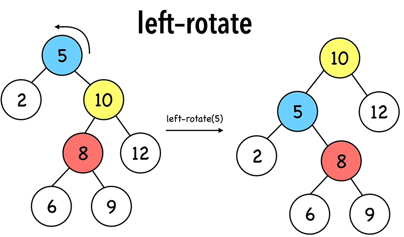 - rotation을 수행해도 red-black tree의 속성을 유지한다.