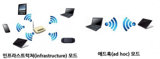 - 애드혹(Ad hoc) 방식 : 무선 클라이언트끼리 통신하는 방식