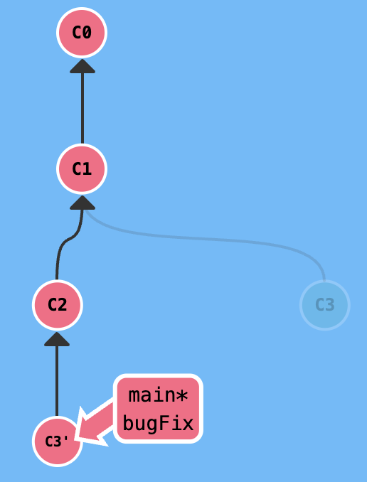 - 같은 방법으로 main 을 c3' 커밋으로 옮겨보자.