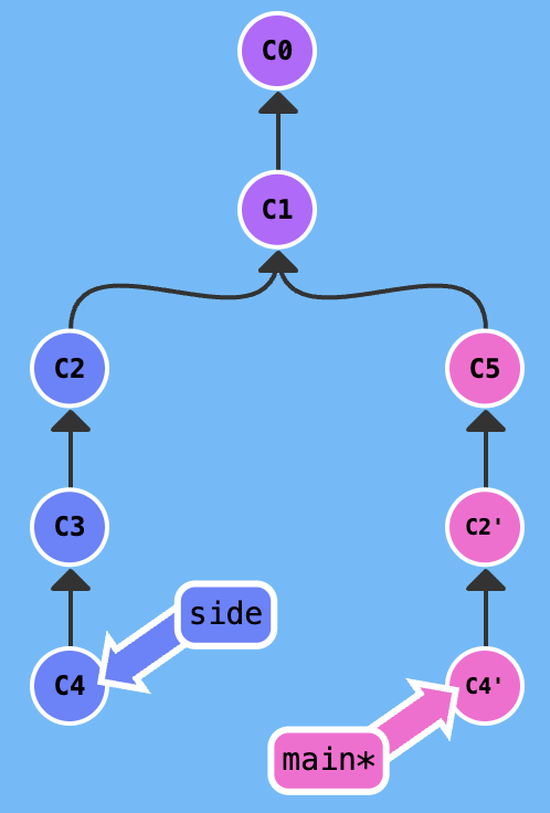- 왼쪽 main 에서 c2, c4 커밋을 가져와서 붙이려고 한다.