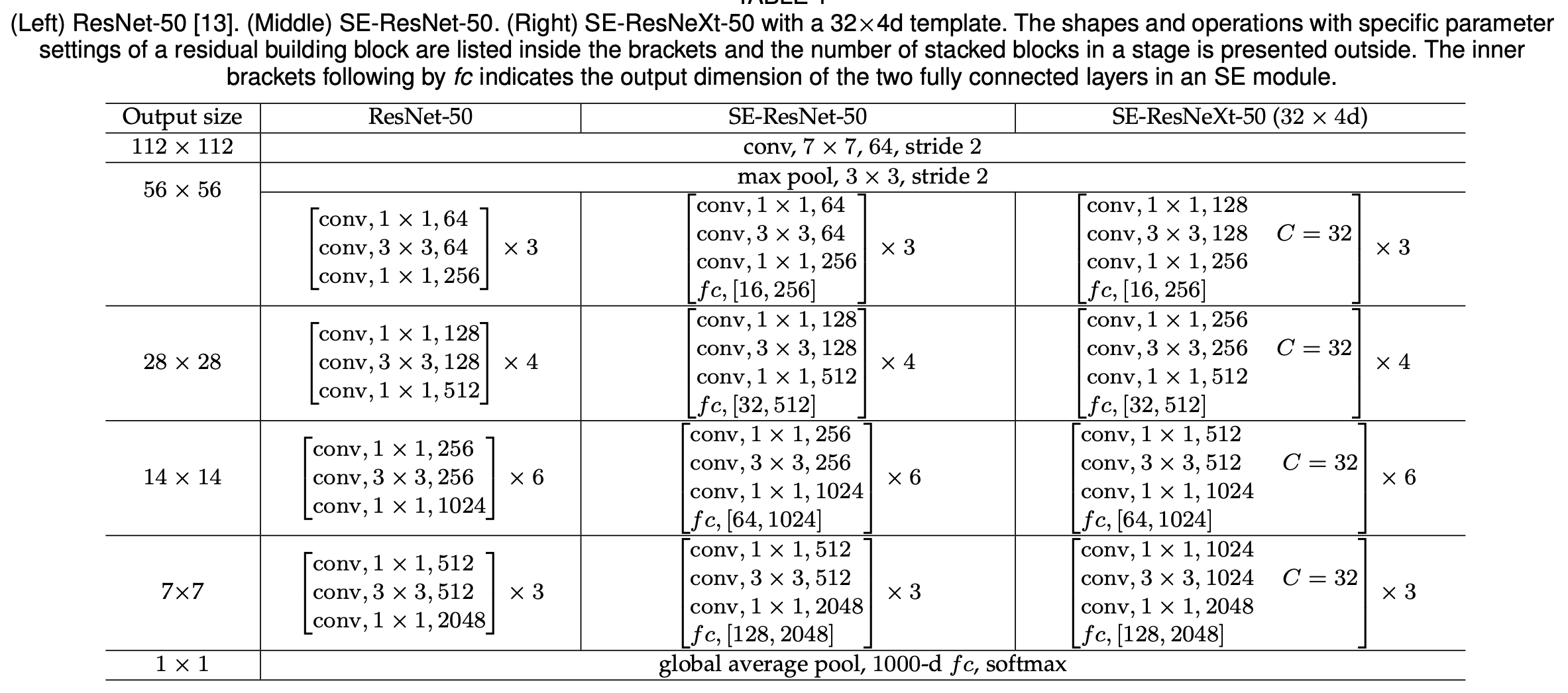 SENet 을 적용한 ResNet 은 다음과 같다.