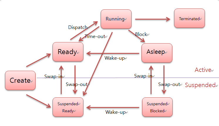 : 메모리가 할당되어 suspended blocked 상테에서 asleep 상태가 될 때, swap device로 이전 정보를 복구하는 것을 의미한다.