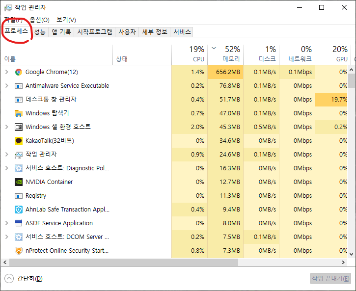 Windows 작업 관리자를 보면 프로세스들을 쉽게 볼 수 있다.