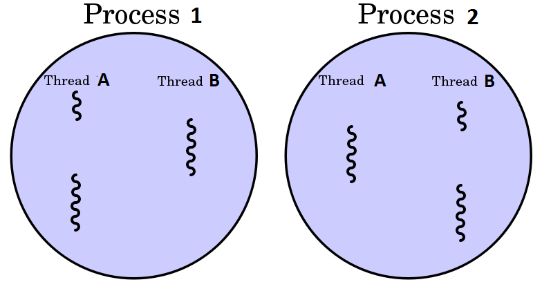 프로세스에 할당된 메모리 공간 (resource) 이 있고, 같은 프로세스의 threads는 동일한 주소 공간을 공유한다.