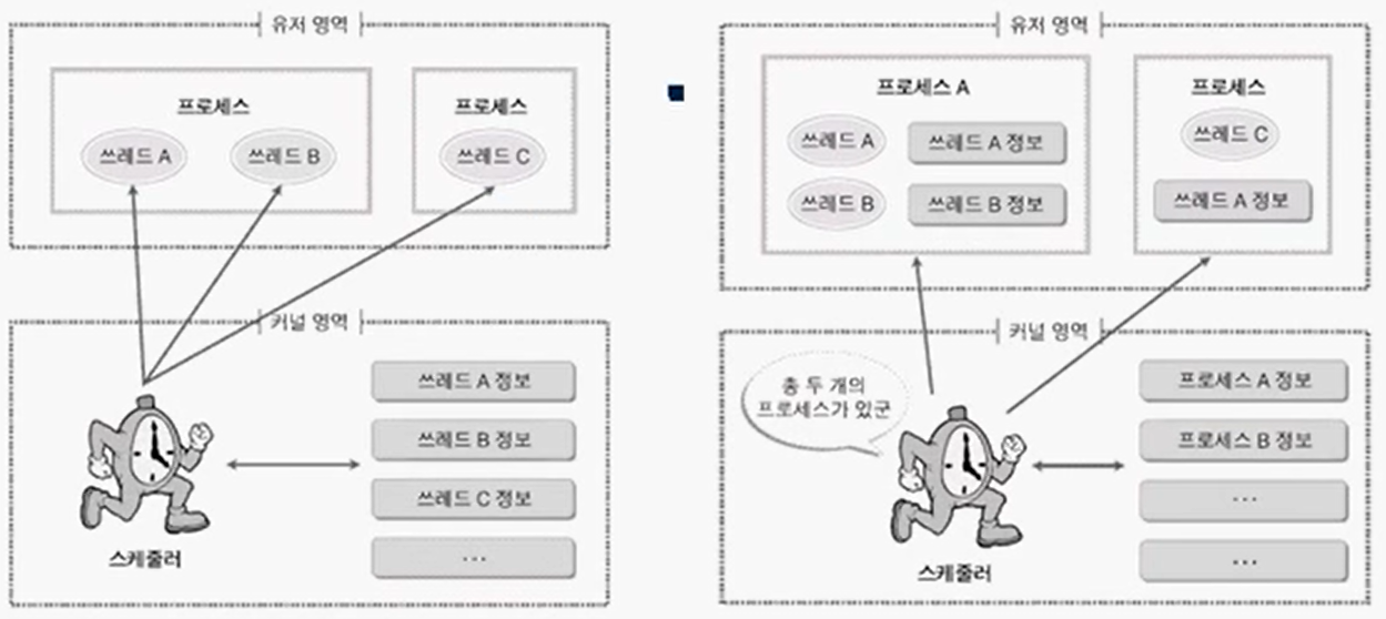 - thread를 관리하는 thread 제어 블록(TCB)도 사용자 영역에 생성된다.